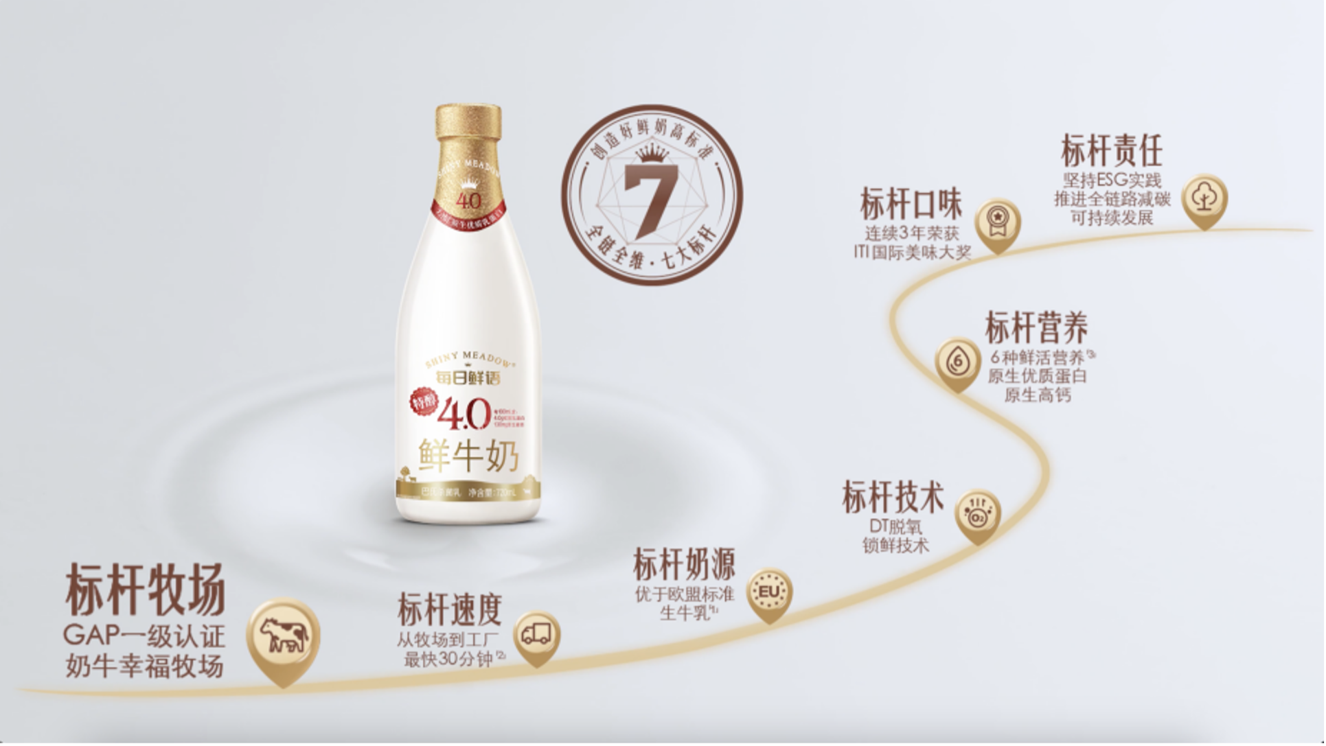 这趟“神鲜之旅”,清晰地勾勒出了七大标杆之间的内在逻辑:独特技术的精准控制,是锁鲜的基础;牢牢锁住新鲜,才能完整保留“活的营养”;有了标杆技术和标杆营养的双重支撑,再加上专业的感官品控,才能带来口味上的极致体验。更重要的是,这三大标杆又离不开产业链上下游的标杆牧场、标杆奶源、标杆速度和标杆责任。它们相互支撑,共同托举起了“神鲜奶”的金字招牌。